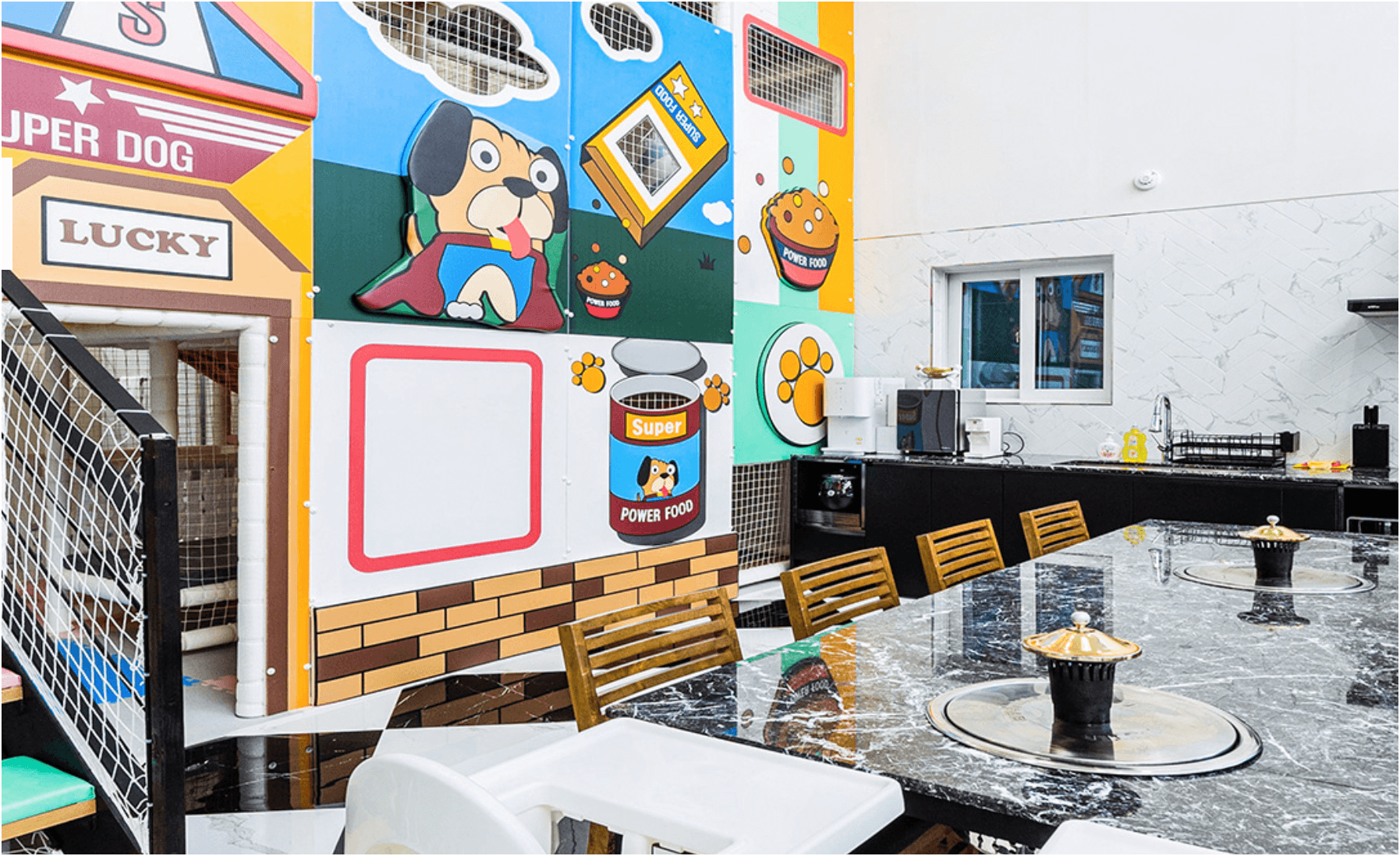 - 미끄럼틀, 주방놀이, 기차놀이, 키즈 빈백 등 다양한 놀이시설