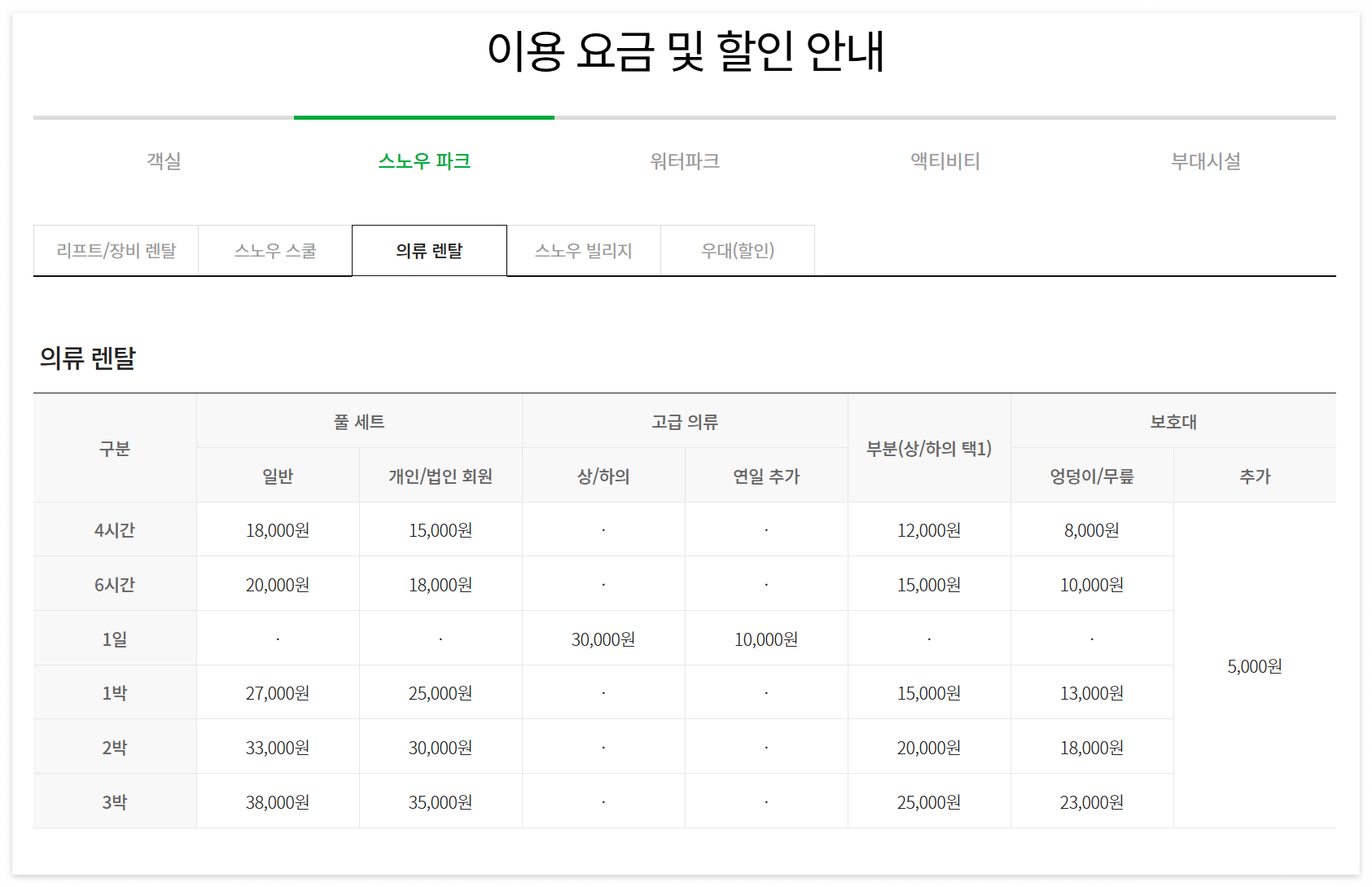 | 스키 풀세트 | 18,000 |